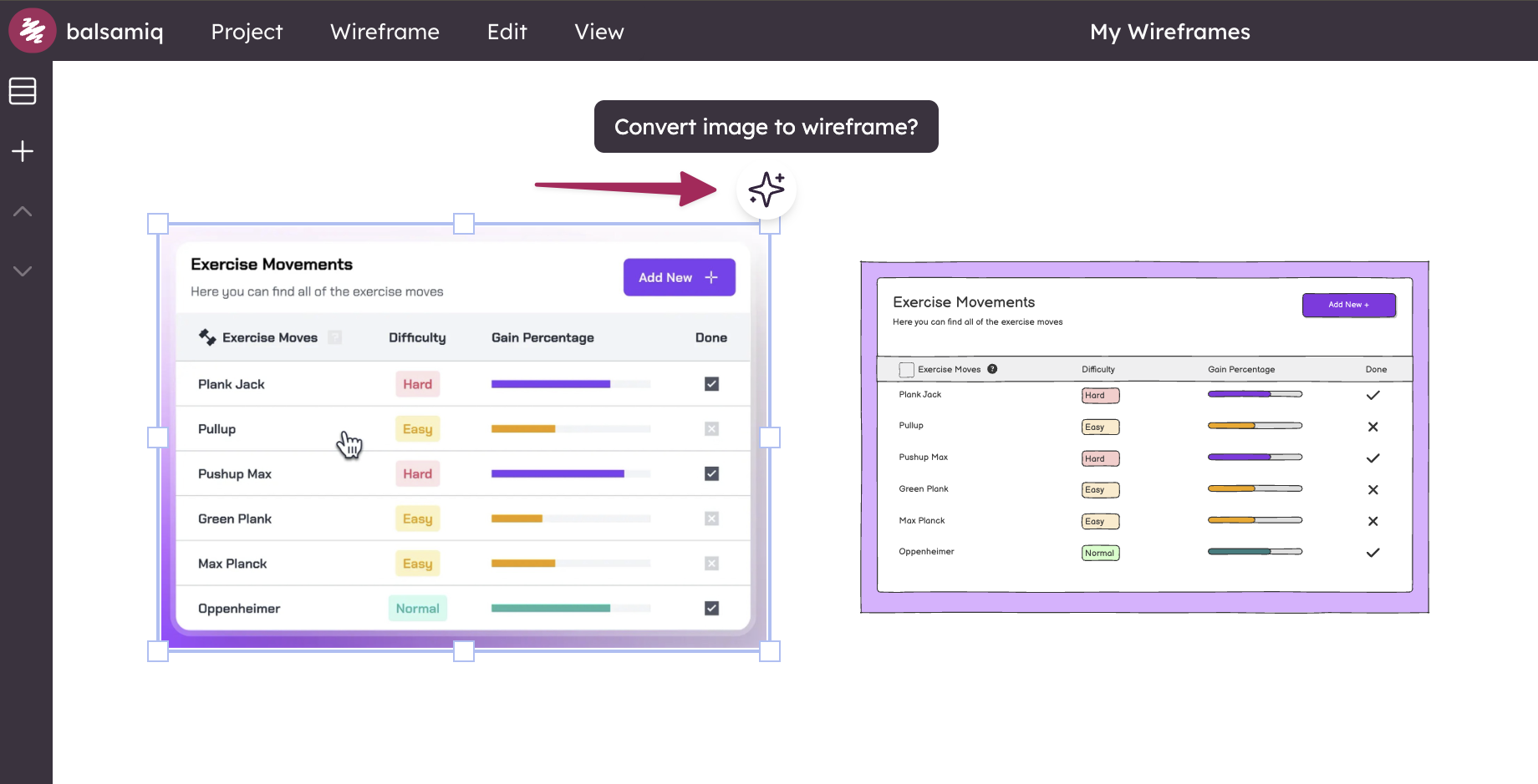 Image to Wireframe (Beta) is our first AI-powered feature. It lets you convert screenshots into editable wireframes with a single click.